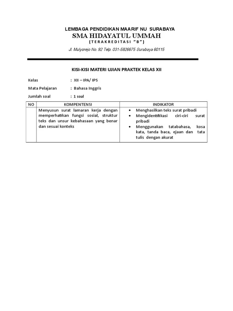 Contoh Ujian Praktek Bahasa Inggris Kelas 12 - Kisi Kisi Ujian Praktik Semua Mata Pelajaran Tahun 2017 Sang Pencari Ilmu / Latihan soal ujian nasional un ipa smp tahun 2020.. Berikut ini contoh latihan soal ujian mata pelajaran bahasa inggris untuk tingkat smasmk kelas 12 terbaru tahun ajaran 20172018. Situs resmi sma negeri 78 jakarta. Berikut adaah contoh soal narrative text pilihan ganda dan jawaban serta penjelasannya. Zikra sufa ujian praktek bahasa arab lb kelas xi mia 6 sumber : 2 kisi2 b inggris ujian ujian praktek kelas vi 2012 2013.